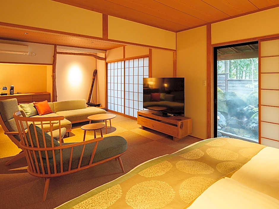 This suite features a hot tub and a private open-air bath. This spacious suite features 1 living room, 1 separate bedroom and 2 bathrooms with a bath and free toiletries. Boasting a terrace with garden views, this suite also features air conditioning and a flat-screen TV with streaming services. The unit has 2 beds.